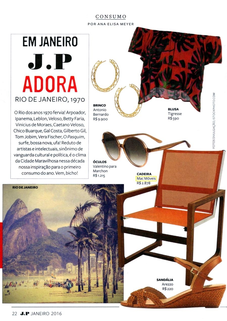 Na matéria "Em Janeiro J.P adora" a Revista Joyce Pascowitch mostra a poltrona Quad. Seu desenho quadrangular, em formas vazadas, faz alusão às placas de antracito, que são compostas por quase 100% de carbono, tornando o material um artefato raro. Sua beleza pura e valiosa é traduzida nas peças desta linha que incorpora sofisticação ao ambiente compondo espaços imponentes.